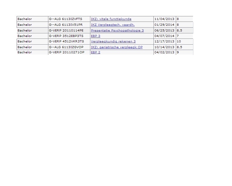 - Vitale Functiekunde: Bij dit vak heb ik mijn medische kennis kunnen toepassen bij verschillende casussen. Door middel van klinsch redeneren stel ik een diagnose. Dit vak heb ik behaald met een acht.